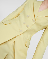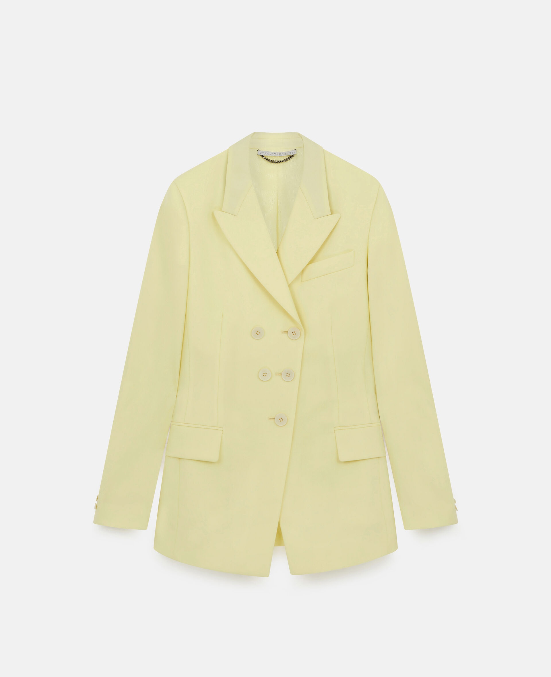 Spring 2022 is a time for renewal and a return to (night)life, made for Stella women who live in the moment and are conscious of tomorrow. The collection blends the nostalgic with the futuristic, connecting the experimental aesthetics of Y2K music subcultures and club kids to the digital youth of today. - Color: Sherbet Yellow - Tailored Jacket - Double Breasted jacket - Peak lapels, flap pockets - Button closure, split at the back - Made in: Bulgaria Product Care & Fit Advice - Care: Dry clean - Composition: 100% Wool, Lining 52% Sustainable Viscose, 48% Organic Cotto - Fits true to size - Designed for a regular fit - Mid-weight, non-stretchy fabric - Model is 5ft 10in/1.78m, is a size UK 8 and wears a size IT 40 (US 4/UK 8/FR 36)