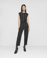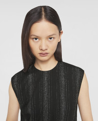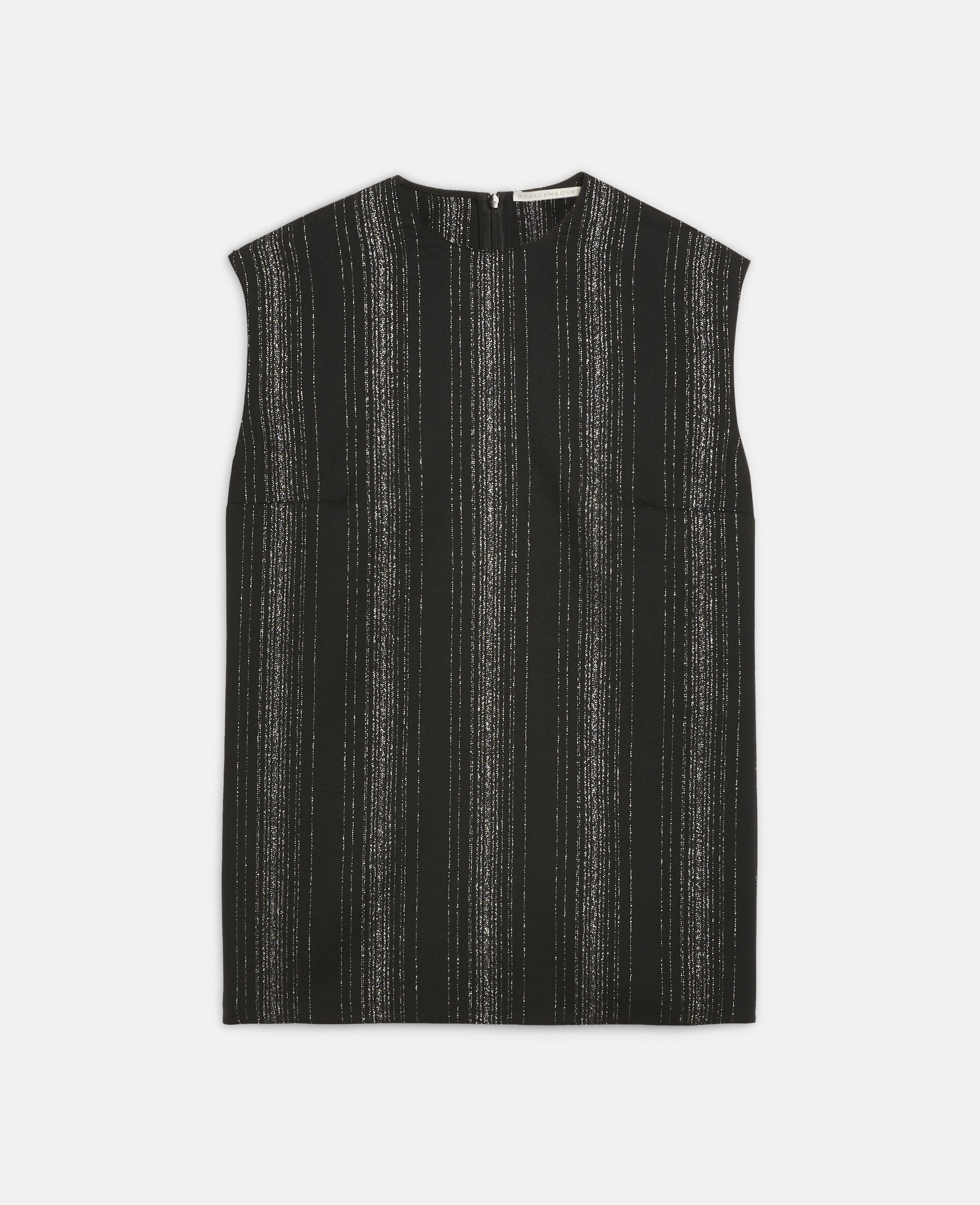 Autumn 2022 is made for an ambitious Stella McCartney woman – desiring to be her best self in all aspects of her life, reflecting her dynamic moods and ageless attitudes. We revisit classic statement pieces that every wardrobe needs, bringing them into the now and elevating them with signature Stella twists - Colour: Black - Top - Crew neck, sleeveless - Concealed zip fastening at the back - Silver lurex stripes on black base - Made in Italy Product Care & Fit Advice - Care: Dry Clean - Composition: 94% RWS Wool, 6% Polyester - Fits true to size - Designed for a regular fit - Mid-weight, non-stretchy fabric