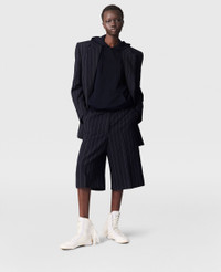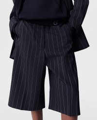 Item 6402513FR7514101 Savile Row tailoring is foundational to every Stella McCartney collection, embodying her signature masculine-yet-feminine perspective. For Summer 2025, these pinstripe shorts are immaculately constructed from fully traceable RWS-certified wool and tailored to a low-rise, straight-leg silhouette. Pair them with the coordinating blazer. - Color: Navy - Pinstripe - Mid-rise - Belt loops - Two pockets - Low crotch - Knee-length cuffs - Concealed zipper fastening - Made in Italy Product Care & Fit Advice - Care: Dry clean only - Composition: 99% wool, 1% polyester - Fit: Regular fit - Sizing: Take your usual size