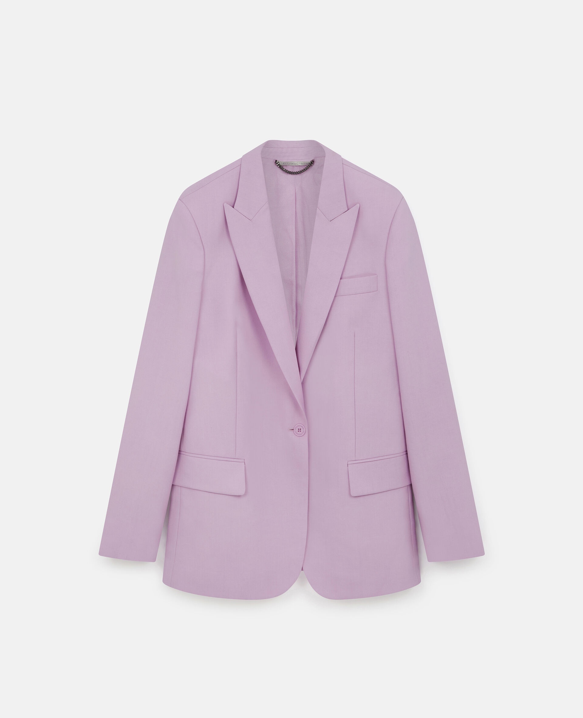 Spring 2022 is a time for renewal and a return to (night)life, made for Stella women who live in the moment and are conscious of tomorrow. The collection blends the nostalgic with the futuristic, connecting the experimental aesthetics of Y2K music subcultures and club kids to the digital youth of today. - Color: Orchid - Tailored Jacket - Single Breasted jacket - Peak lapels, flap pockets - Button closure, split at the back - Made in: Bulgaria Product Care & Fit Advice - Care: Dry clean - Composition: 100% Wool, Lining 52% Sustainable Viscose, 48% Organic Cotto - Fits true to size - Designed for a regular fit - Mid-weight, non-stretchy fabric - Model is 5ft 10in/1.78m, is a size UK 8 and wears a size IT 40 (US 4/UK 8/FR 36)