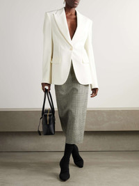 EDITORS'NOTES Stella McCartney's blazer is undeniably chic and sophisticated, ensuring you'll turn to it often for the office or events. It's tailored from wool-blend twill in a chic single-breasted design with peak lapels that draw the eye to the padded shoulders. Lower-Impact Materials. This product is made using at least 50% lower-impact materials or ingredients. Find out more about our NET SUSTAIN criteria here. SIZE & FIT Model measurements: - Fits true to size, take your normal size - Designed for a slightly loose fit - Internal shoulder pads - Mid-weight, slightly stretchy fabric - Model is 177cm/ 5'10" and is wearing an IT 40 - Bust: 79cm/ 31" - Waist: 61cm/ 24" - Hip: 89cm/ 35" DETAILS & CARE - White wool-blend twill - Button fastenings at front - 97% wool, 3% elastane - Dry clean - This product has been made with responsibly sourced wool, originating from farms protecting animal welfare and implementing progressive land management practices