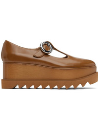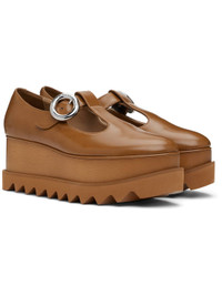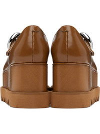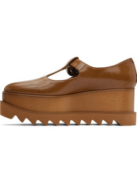 Polished faux-leather Mary Jane-style derbys in tan. · Cutouts and pin-buckle strap at vamp · Buffed faux-leather lining · Logo patch at molded faux-leather footbed · FSC-certified wood platform midsole · Treaded foam rubber sole · Platform: H2" · Heel: H2.75" Made from cruelty-free, non-animal materials. Supplier color: Tan Upper: synthetic. Sole: wood, rubber. Made in Italy 251471F120005