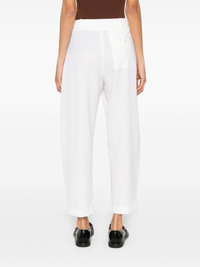 tapered-leg cropped wool trousers Highlights - Cream white - Wool blend - Twill weave - Belt loops - Two side slash pockets - Front double-pleat detailing - Cropped leg - Rear button-fastening pocket - Tapered leg - Front concealed hook and zip fly fastening Imported Composition RWS Wool 97%, Elastane 3% Washing instructions Dry Clean Only