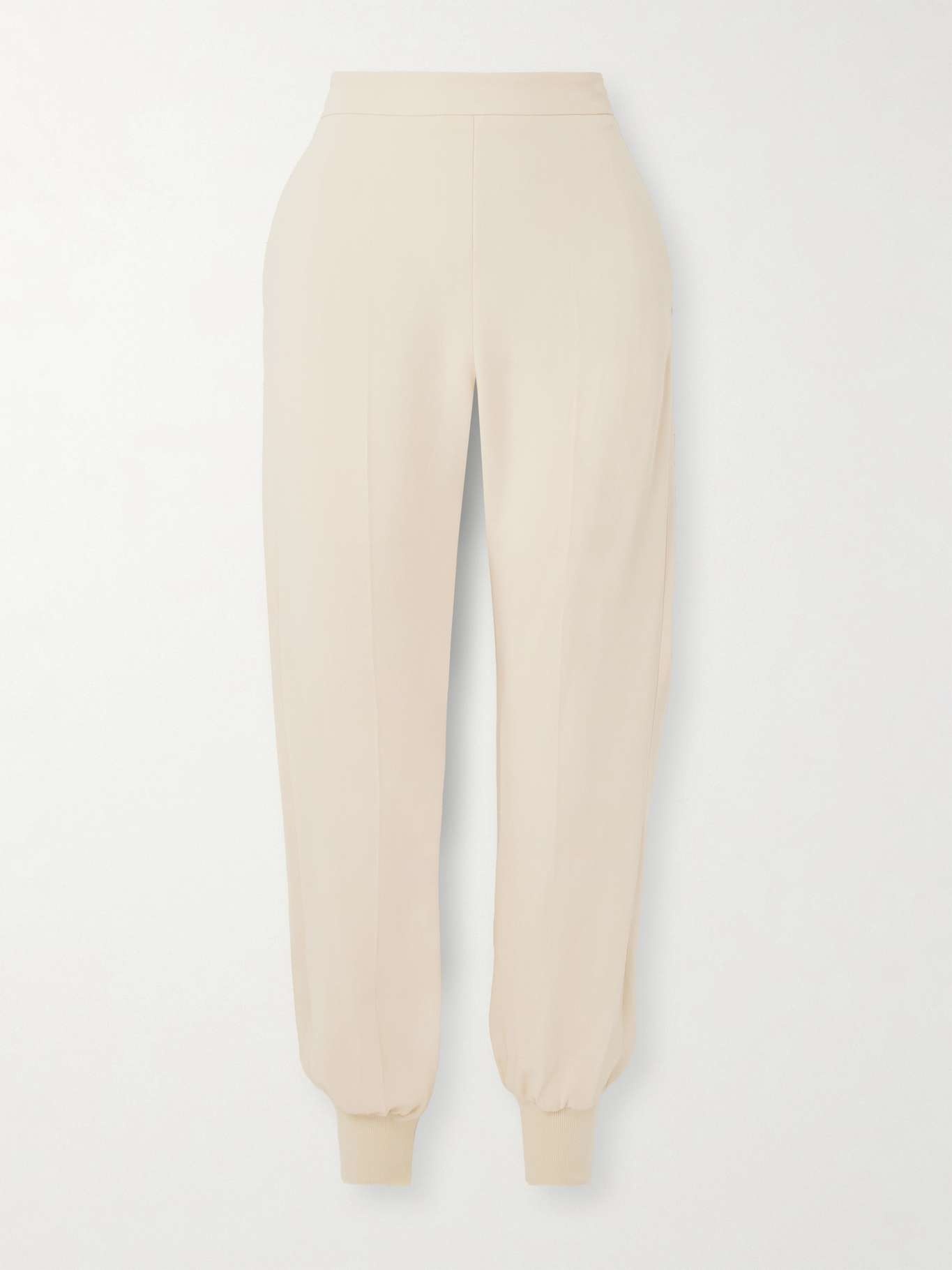 EDITORS'NOTES Stella McCartney's track pants are just as suited for lounging or wearing out in the city. They're made from soft crepe blended with 96% BAILU® viscose and have a comfortable, partially elasticated waistband, pressed creases and tapered cuffs. <br><br>This product was created using Considered Materials. Find out more about NET SUSTAIN <a href="https://www.net-a-porter.com/en-gb/campaigns/net-sustain">here.</a> SIZE & FIT - Fits true to size, however those who are between sizes should take the smaller size - High-rise, designed for a relaxed fit, tapered at the hem - Partially elasticated at the waist for a comfortable fit - Mid-weight, slightly stretchy fabric - Model is 177cm/ 5'10" and is wearing an IT 40 DETAILS & CARE - Cream crepe - Pull on - 96% viscose, 4% elastane - Designer color: Gesso