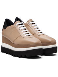 Handcrafted low-top grained faux-leather sneakers. · Square toe · Lace-up closure · Padded tongue and collar · Logo stamp at outer side · Serrated edges at sides · Perforated logo at heel tab · Striped webbing trim at heel counter · Mesh lining · Stacked foam rubber platform midsole · Treaded foam rubber sole · Platform: H2.25" · Heel: H3" Made from cruelty-free, non-animal materials. Supplier color: Taupe Upper: synthetic. Sole: rubber. Made in Spain 261471F128000