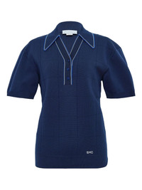 grid short-sleeve polo top Highlights - Navy blue - Grid detail - Polo collar - Short button fastening - Short sleeves - Ribbed hem Imported Composition Fabric 100% Washing instructions Read Manufacturer Guidelines