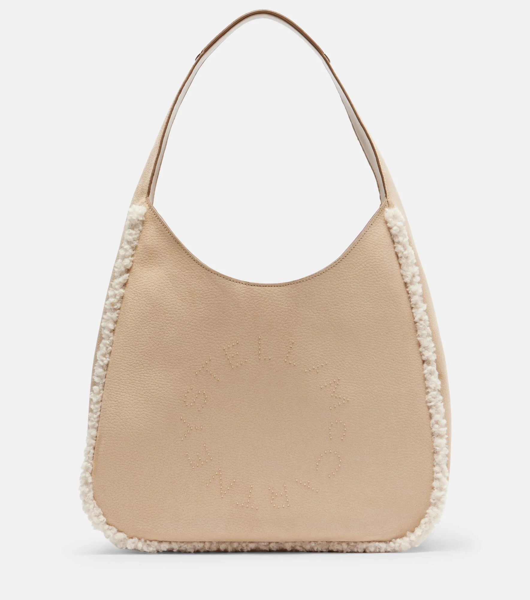 Elevate your everyday looks with this shoulder bag from Stella McCartney. Crafted in Italy, the teddy-trimmed piece has wide straps and a structured silhouette. Product Details - Material: synthetic material - Lining: synthetic material - Made in Italy - Color: beige - Designer color name: Butter Cream - Item color: beige - Closure: magnetic fastening - Top handle - Includes: dust bag - Item number: P01118453 Size & Fit - Height 27cm-10.5" - Width 36cm-14" - Depth 13cm-5" - Length shoulder strap 51cm-20"