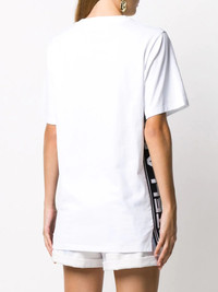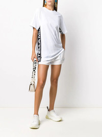 logo tape T-shirt Even thought this logo tape T-shirt says Stella McCartney on the sides, it has your name all over it. What are you waiting for? Claim what's yours. Highlights - White - Cotton - Loose fit - Round neck - Short sleeves - Straight hem - Logo insert tape to the sides Imported Composition Cotton 100%, Viscose 85%, Polyester 15% SIZE & FIT Model measurements Height 5 ft 9 in(1.76 m) Bust/Chest 31.88 in(81 cm) Hips 37 in(94 cm) Waist 25.19 in(64 cm) FittingInformation This piece fits true to size. We recommend you get your regular size Cut for a relaxed fit Made with a mid-weight fabric Washing instructions Hand Wash