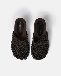 Item 810408KP0272101 Summer 2024 calls for this pair of sun-worshipping vegan mules. Boasting a net-like upper knotted from a recycled polyester weave, the pair sit on a sole moulding to the foot, resting upon a sculpted kitten heel. Breathable, beguiling and beach-ready, they are guaranteed to become a mainstay in your summer wardrobe. - Colour: Brown - Cocoa brown - Recycled materials weave - Knotted, woven upper - Closed toe - Slips on - Sculptural kitten heel - Made in Italy Product Care & Fit Advice Spot clean only with soft damp cloth Composition: Upper: 73% polyurethane (47% of which is bio-based mass), 27% recycled polyester Heel height: 65mm True to size
