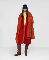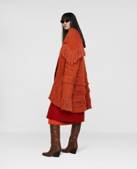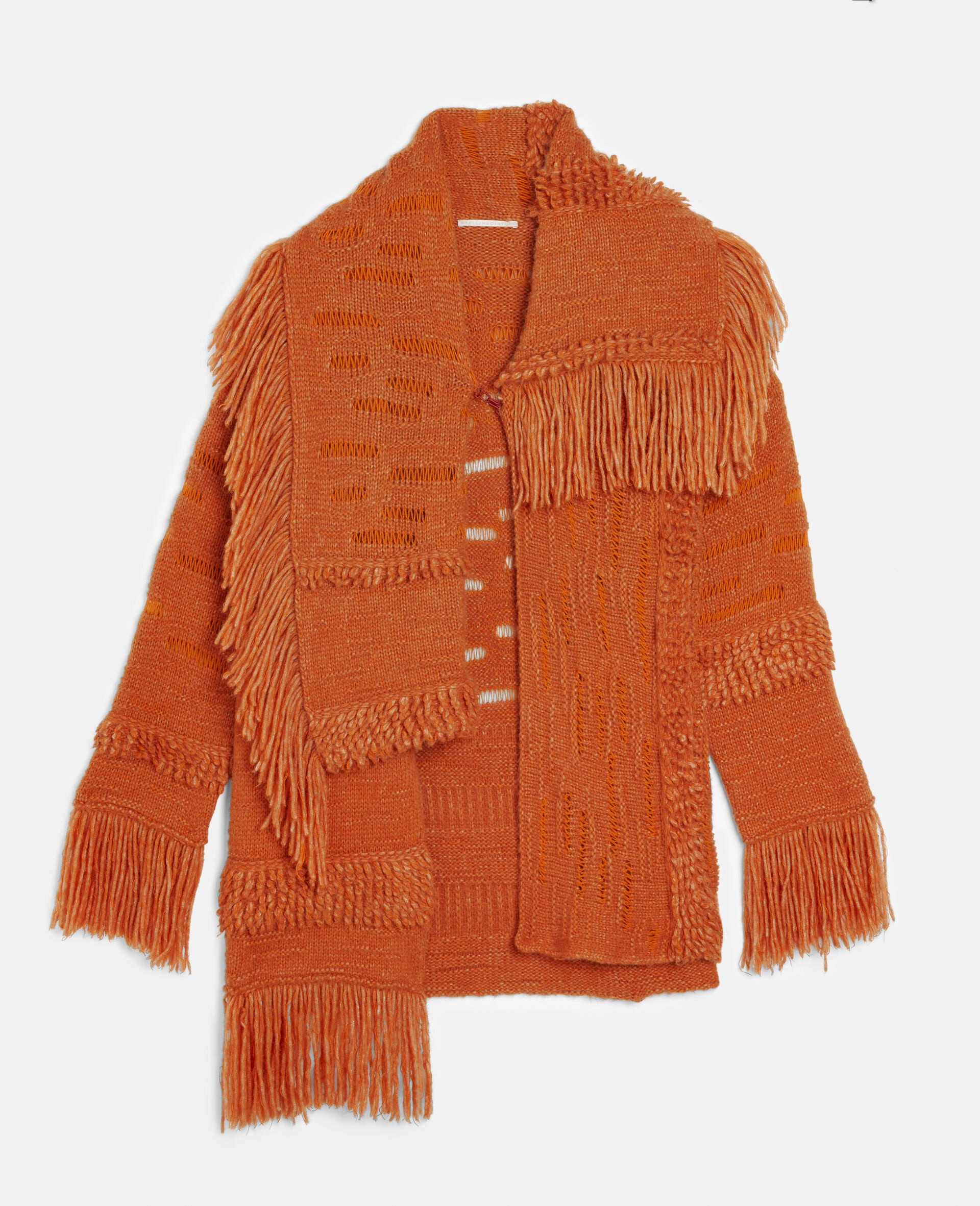 Autumn 2022 is made for an ambitious Stella McCartney woman – desiring to be her best self in all aspects of her life, reflecting her dynamic moods and ageless attitudes. We revisit classic statement pieces that every wardrobe needs, bringing them into the now and elevating them with signature Stella twists - Colour: Tangerine - Knit coat - Single hook fastening - Fringed hem, cuffs and collar - Split sides, asymmetrical hem - Mesh knit details - Made in Italy Product Care & Fit Advice - Care: Dry Clean - Composition: 57% Traceable Alpaca Wool, 24% Wool, 19% Polyamide - Oversized fit - For a regular fit, please purchase a size smaller than normal - Mid-weight, non-stretchy fabric