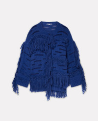 Autumn 2022 is made for an ambitious Stella McCartney woman – desiring to be her best self in all aspects of her life, reflecting her dynamic moods and ageless attitudes. We revisit classic statement pieces that every wardrobe needs, bringing them into the now and elevating them with signature Stella twists - Colour: Jewel Blue - Knit jumper - Crew neck, long sleeves - Split side hems - Fringe details throughout - Dropped shoulders - Please note this item will be slightly different from the images as it will come without button fastening. - Made in Italy Product Care & Fit Advice - Care: Dry Clean - Composition: 57% Traceable Alpaca Wool, 24% Wool, 19% Polyamide - Oversized fit - For a regular fit, please purchase a size smaller than normal - Mid-weight, non-stretchy fabric - Model is 5 ft 11 in/1.8 m, is a size UK 10 and wears a size IT 40 (US 4-6/UK 10/FR 36)