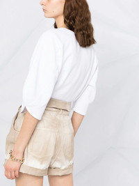 tie-dye denim shorts Stella McCartney revives a '90s trend with these tie-dye denim shorts. Designed with a foldover top detail and turn-up hems, these high-waisted pair promise to bring a hint of nostalgia to your look. Highlights - Beige - Cotton-denim - Tie-dye print - High waist - Foldover top - Button and concealed fly fastening - Two side slit pockets - Two rear patch pockets - Turn-up hem Made in Italy Composition Cotton 100% SIZE & FIT Model measurements Height 5 ft 9 in(1.75 m) Bust/Chest 31.88 in(81 cm) Hips 34.64 in(88 cm) Waist 22.83 in(58 cm) Measurement FRONT RISE 11.81 in(30 cm) HIPS 38.58 in(98 cm) WAIST 27.55 in(70 cm) Washing instructions Dry Clean Only