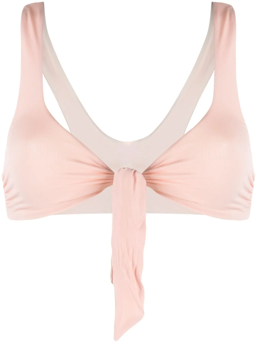 tie-front bikini top Make a splash in this tie-front bikini top from Stella McCartney. Designed with racerback and tie-front detail, this flattering piece is perfect for beach-side bathing and lively pool parties alike. Race you to the beach! Highlights - Pale blush pink - Front tie fastening - Racerback - Logo plaque to the back - Single shoulder straps - Be mindful to try on swimwear over your own garments. Made in Italy Composition Outer: Polyester 84%, Spandex/Elastane 16% Lining: Polyester 84%, Spandex/Elastane 16% Washing instructions Hand Wash