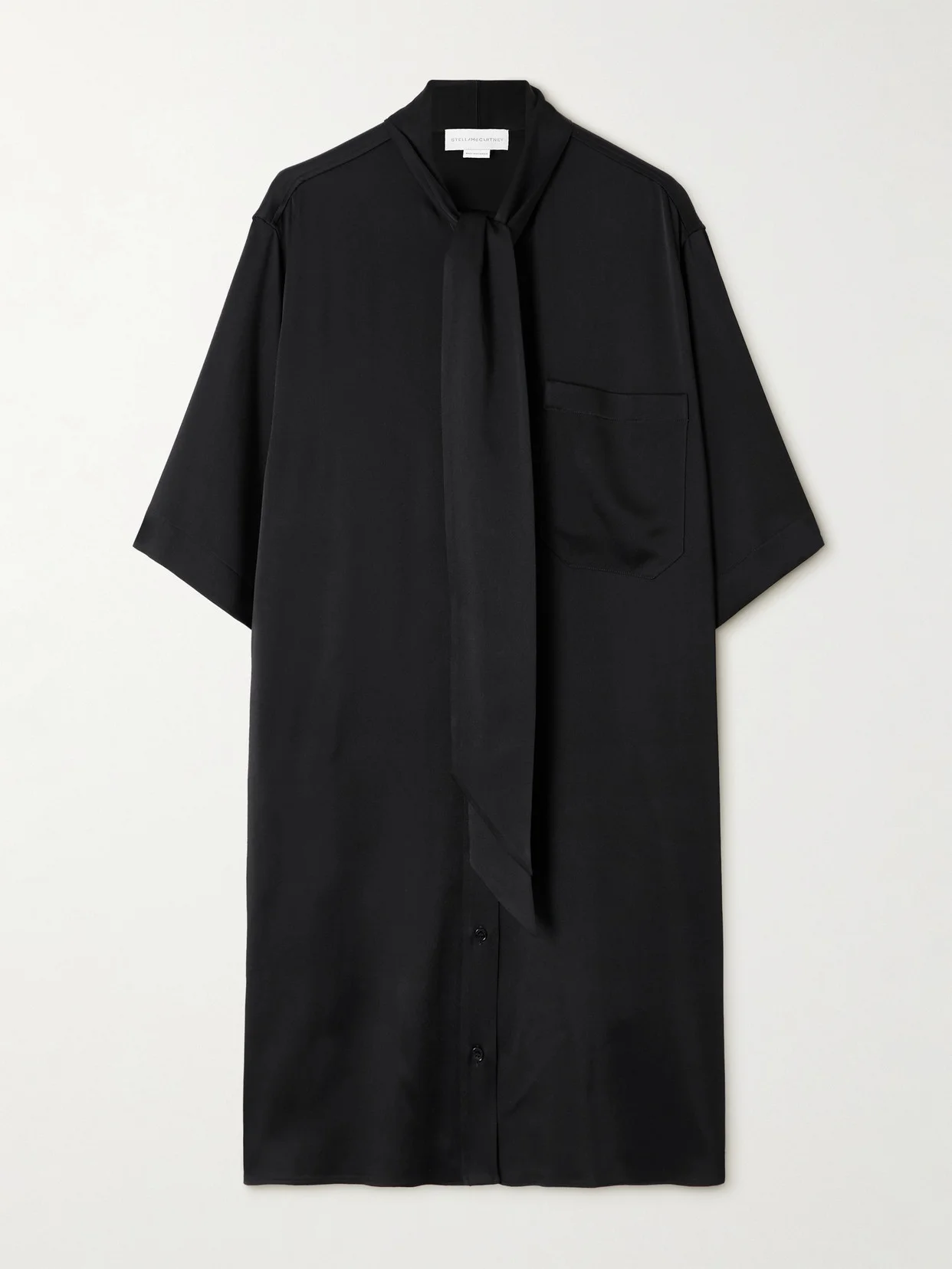 Stella McCartney's dress has sweeping ties that cascade from the neckline, giving the T-shirt style design an elevated feel. It's made from fluid satin-crepe in a loose fit enhanced by dropped shoulder seams. Wear yours with sandals or knee boots, depending on season.