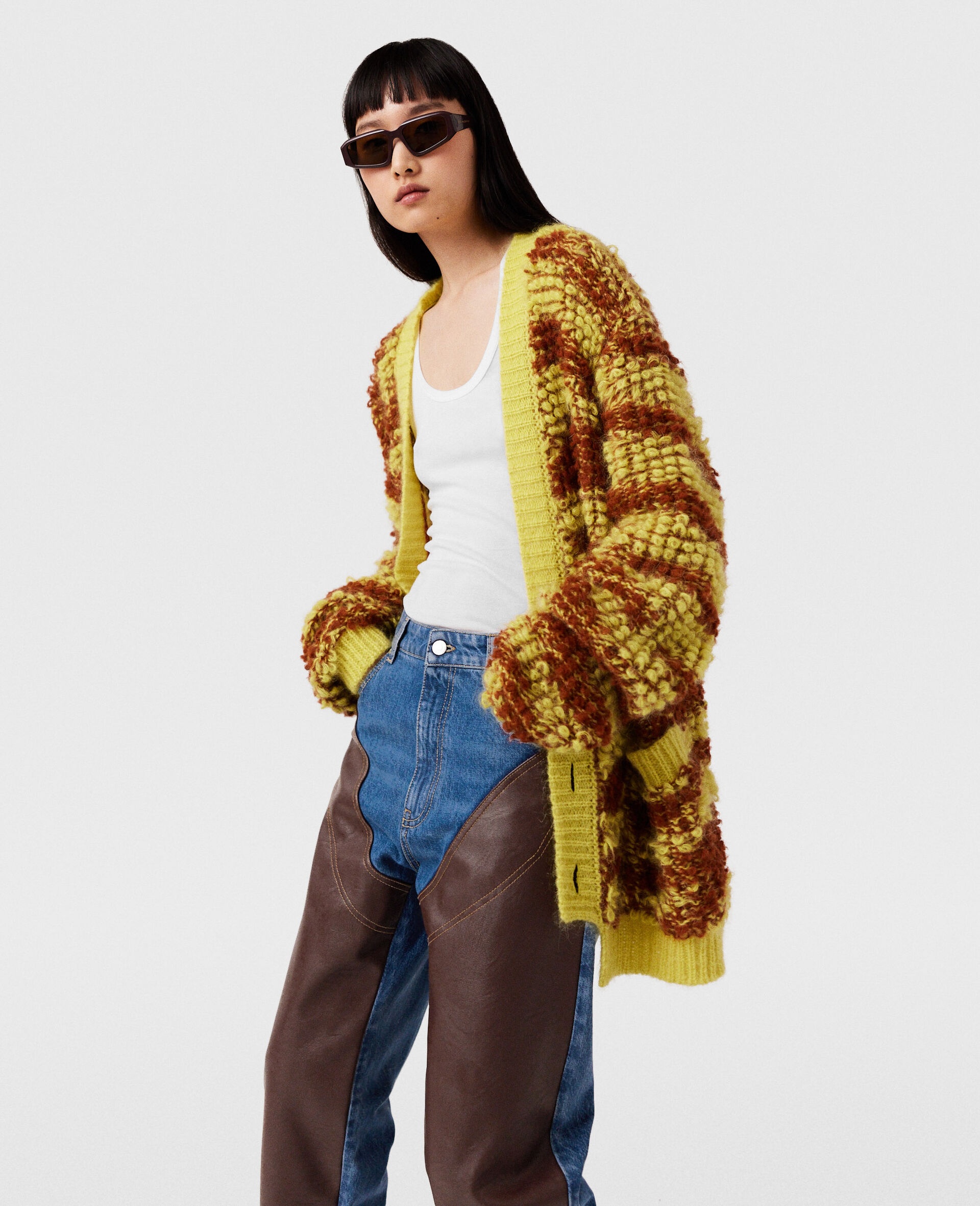 Item 6K08093S25128493 Spun from RAS-certified wool, this cozy, slouchy cardigan is shaped to an oversized silhouette. Woven from a strikingly contrasting palette, it’s complimented with subtle tonal buttons, finished with two deep pockets and ribbed trims. It celebrates Stella’s lifelong love of animals in an iconic tiger print. - Color: Multicolor - Yellow and rust - All-over tiger pattern - Deep V-neck - Long sleeve - Ribbed trims - All-over mohair-like boucle texture - Button fastening - Made in Romania Product Care & Fit Advice Care: Dry clean only Composition: Main fabric: 78% alpaca wool 22% polyamide Size: Fits true to size Designed for a slouchy fit Lightweight, stretchy fabric