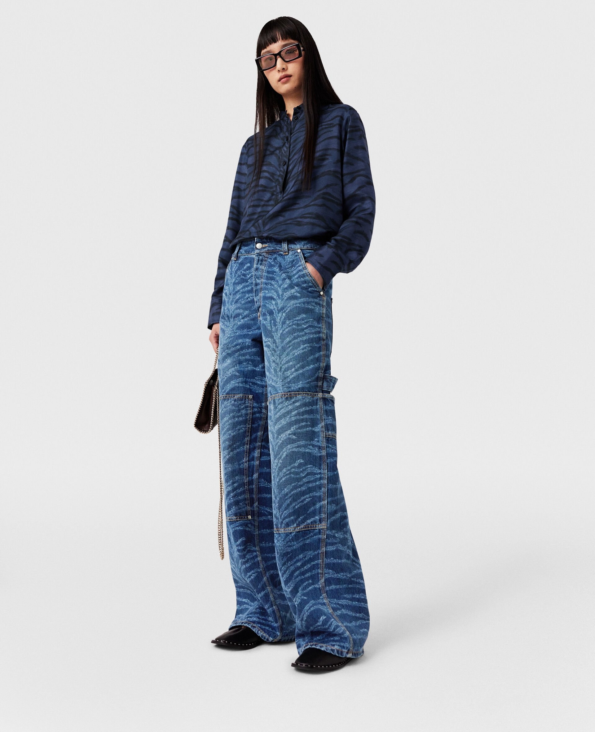 Item 6D03013SPH794071 - Color: Blue denim - Vintage wash blue denim - All-over tiger pattern - High rise - Contrasting stitching - Flat waistband - Belt loops - Straight leg - Panels at knees - Tool loop at back and side - Two pockets at front - Two pockets at back - Concealed zipper fastening - Made in Italy - Color: Blue denim - Vintage wash blue denim - All-over tiger pattern - High rise - Contrasting stitching - Flat waistband - Belt loops - Straight leg - Panels at knees - Tool loop at back and side - Two pockets at front - Two pockets at back - Concealed zipper fastening - Made in Italy Product Care & Fit Advice Care: Dry clean only Composition: Main fabric: 100% cotton Size: Fits true to size Designed for a regular fit Midweight, non-stretch fabric