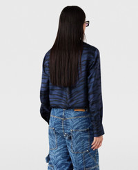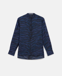 Item 6200393ES2104101 No tigers were harmed in the making of this shirt. It is spun from soft, lightweight organic silk, printed with an all-over tiger pattern. Its clean-cut, classic silhouette is topped with a grandfather collar and stitched with tonal buttons. Wear it with some loose-fitting, tailored pants. - Color: Navy - Navy tiger print - Grandfather collar - Long sleeves - Buttoned cuffs - Tonal buttons - All-over tiger pattern - Waist-length hem - Button fastening - Made in Romania Product Care & Fit Advice Care: Dry clean only Composition: Main fabric: 100% silk - Size: Fits true to size - Designed for a regular fit - Lightweight, non-stretch fabric