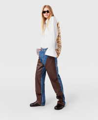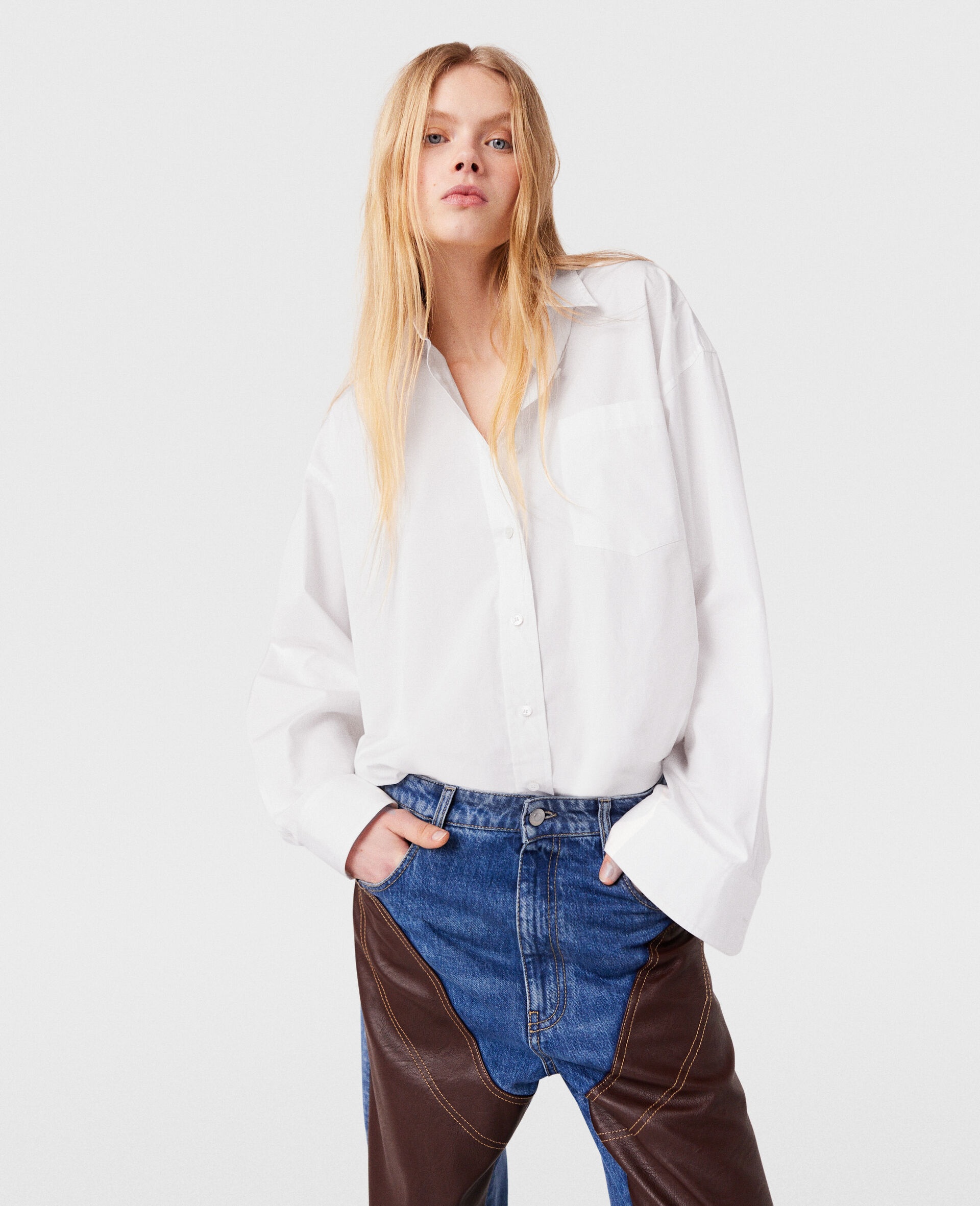 Item 6200933ES2109500 No tigers were harmed in the making of this shirt. This boyfriend shirt is tailored from crisp organic cotton poplin, with a lightweight organic silk panel inserted at the back – printed with an all-over tiger pattern. Its classic, long-sleeve silhouette is topped with a pointed collar and finishes on a curved hem. Pair it with the coordinating pants. - Color: White - Pure white - Natural tiger print insert - Round neck - Elbow-length puff sleeves - Two side slits - Flared panels at sides - Tiger pattern insert at back - Ankle-length hem - Zipper fastening - Made in Romania Product Care & Fit Advice Care: Dry clean only Composition: Main fabric: 100% organic cotton - Size: Fits true to size - Designed for a boyfriend fit - Lightweight, non-stretch fabric