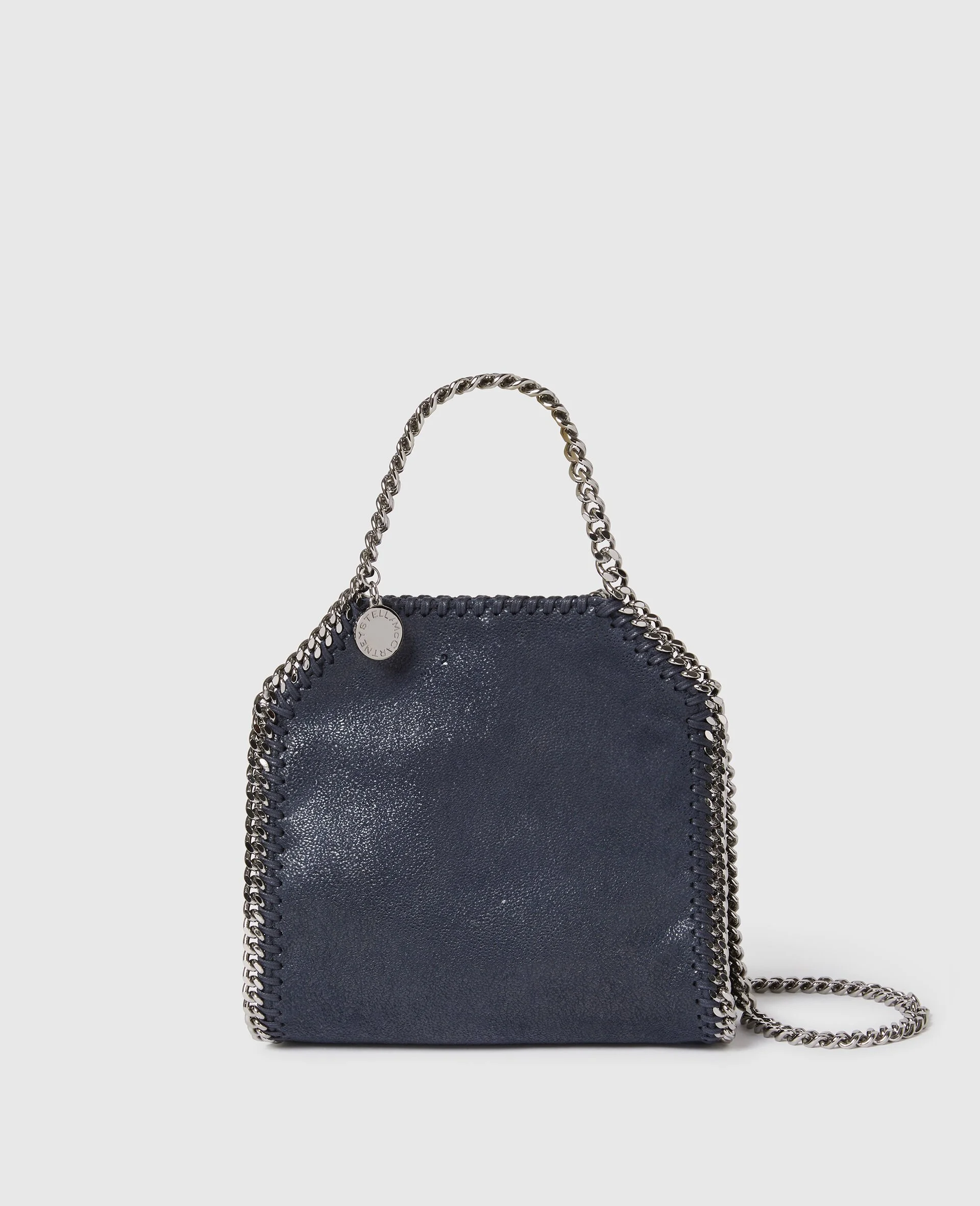 Item 391698W91324061U Elevate everyday dressing with this iconic Stella McCartney Falabella Tiny tote bag. Responsibly made from our signature grained Shaggy Deer fabric, this vegan tote bag is framed by a recycled brass and recyclable aluminum diamond-cut chain and is lined with recycled materials. There’s a slip pocket inside for smaller items, while the main compartment is roomy enough for keys, a phone and lipstick. - Color: Midnight - Comfortably fits all phones alongside small daily essentials - Matte Shaggy Deer vegan alternative to animal leather with semi-gloss grain - Signature recycled brass and recyclable aluminum diamond-cut chain - Waxed GOTS-certified organic cotton lacing - Two top handles, one shoulder strap - One main compartment - One internal slip pocket - Magnetic snap fastening - Engraved logo medallion charm - Recycled polyester monogram lining - Handcrafted in Italy - All of our shoes and accessories are made from non-leather materials in keeping with our cruelty-free ethos. Product Care & Fit Advice - Care: Spot clean only with soft damp cloth. - Composition: 100% Polyester - Fits all phones and wallets. - Size: 10.4 x 9.3 x 3.9 in - Handle drop: 4.3 in - Strap length: 18.5 in - Weighs approximately 22.5 oz