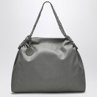 Tote bag by Stella McCartney made of grey Shaggy Deer matte vegan fabric with a semi-gloss grain, featuring two chain handles, a magnetic button fastening, a main compartment, an internal zipped pocket and an engraved logo medallion charm. Product SKU: 7B0141W9132/XI_STELL-1220_100-U Brand: Stella McCartney Color: Grey Material: Polyester Season: SS25 Made in: Made in Italia Luggage & Bags > Shopping Totes