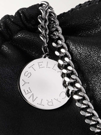 EDITORS'NOTES Stella McCartney's 'Falabella' shoulder bag is worth adding to your daily rotation. Made from vegan materials, it's embellished with recycled brass and aluminium chain, and an engraved pendant. Stow your headphones and laptop whilst slipping your cardholder into the zipped pocket. Lower-Impact Materials. This product is made using at least 50% lower-impact materials or ingredients. Find out more about our NET SUSTAIN criteria here. DETAILS & CARE - Black vegan material - Top handles - Internal zip pocket - Fully lined - Magnetic snap fastening at top
