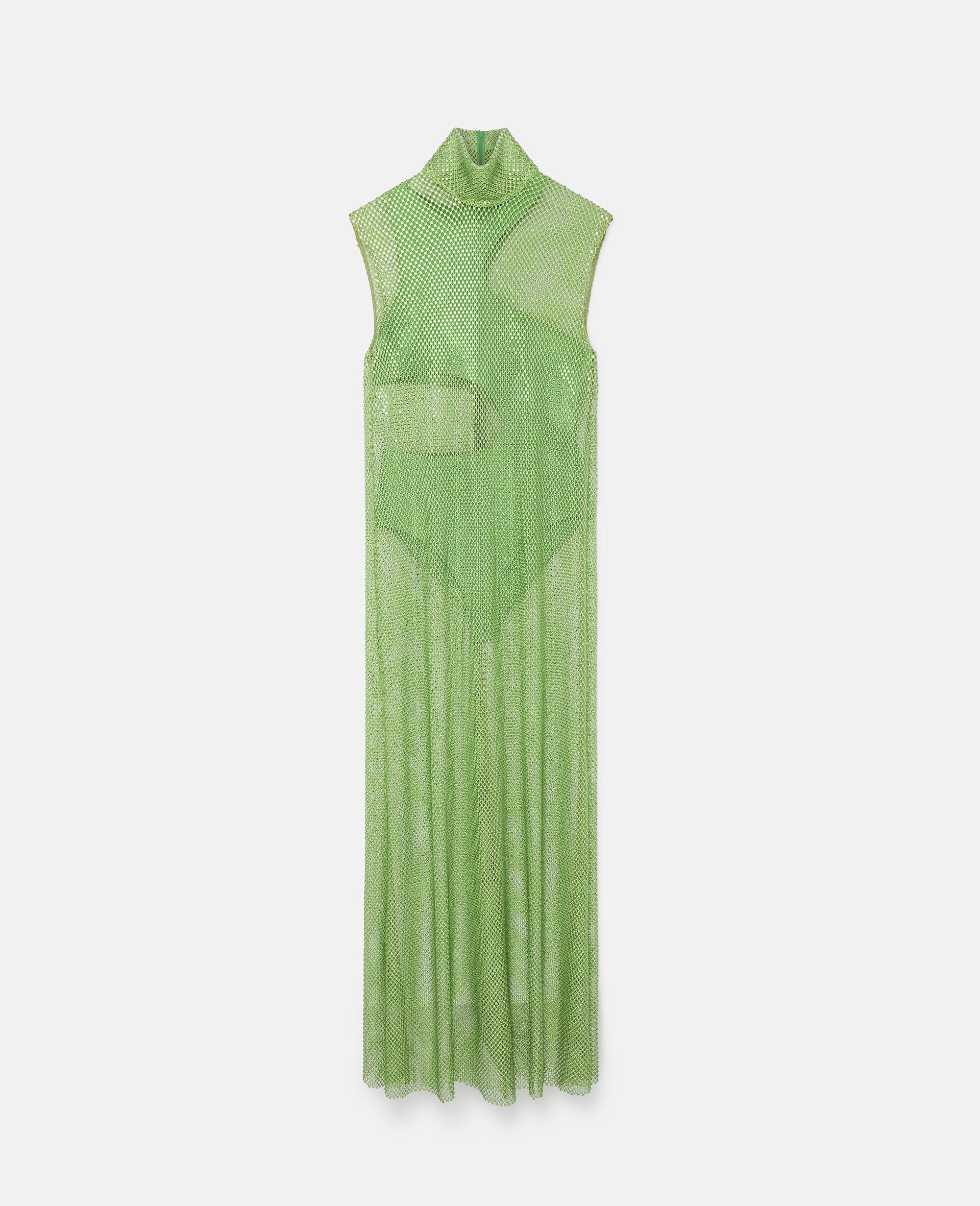 Summer 2022 evokes a sensual femininity, encouraging Stella women to redefine sexiness with an effortless and vibrant wardrobe. It harmonizes billowing shapes with bodycon silhouettes, near-transparent airiness with rich textures, and biophilic cut-outs on psychedelic prints. - Color: Fluo Green - Maxi dress - Turtle neck, sleeveless - Concealed zip fastening at the back - Hotfix diamantés on a sheer net gown - Cut-out bodysuit in the same color - Made in: Italy Product Care & Fit Advice - Care: Do not wash, do not tumble dry, store this garment folded rather than hanging it to avoid any stretching - Composition: Main Materials 90% Textile Glass, 10% Polyamide; Secondary Materials 93% Polyester, 7% Elastane; Details 100% Polyamide; Bodysuit 83% Viscose, 17% Polyeste - Fits true to size - Designed for a regular fit - Mid-weight, elasticated bodysuit - Model is 5 ft 11 in/1.80 m, is a size UK 8 and wears a size IT 38 (US 2-4/FR 34)