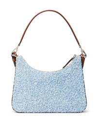 tweed shoulder bag Highlights - Light blue - Cotton - Tweed panelling - Debossed logo to the front - Detachable shoulder strap - Zip fastening - Internal zip-fastening pocket Made in Italy Composition Outer: Polyamide 100%, Regenerative Cotton 100%, Recycled Brass 100% SIZE & FIT Measurement DEPTH 2.4 in(6 cm) HEIGHT 9.8 in(24.8 cm) STRAP 22 in(55.8 cm) WIDTH 7.5 in(19 cm)