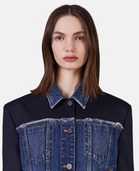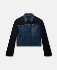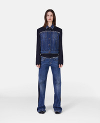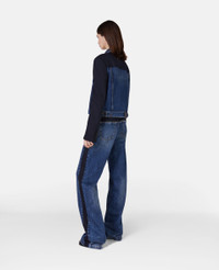 A Noughties nod is felt with this panelled denim jacket by Stella McCartney. In a classic vintage wash, the jacket is innovated from regenagri® cotton denim with a contrast black twill tailoring yoke and sleeves. Our regenerative cotton denim is grown and harvested using nature-positive sourcing methods that actively restore soil nutrients, enhance biodiversity, increase ecosystem resilience and improve welfare of farmers. - Colour: Vintage Wash - True denim blue - regenagri® cotton denim - Vintage wash - Contrast black twill yoke and sleeves - Black S-Wave embossed patch at back hem - Point collar - Long sleeves with button cuffs - Button-through fastening - Two chest patch pockets, and two front slant welt pockets - Made in Italy Product Care & Fit Advice - Care: Dry clean only - Composition: 100% regenagri® cotton - Fits true to size - Designed for a regular fit - Mid-weight, non-stretch fabric
