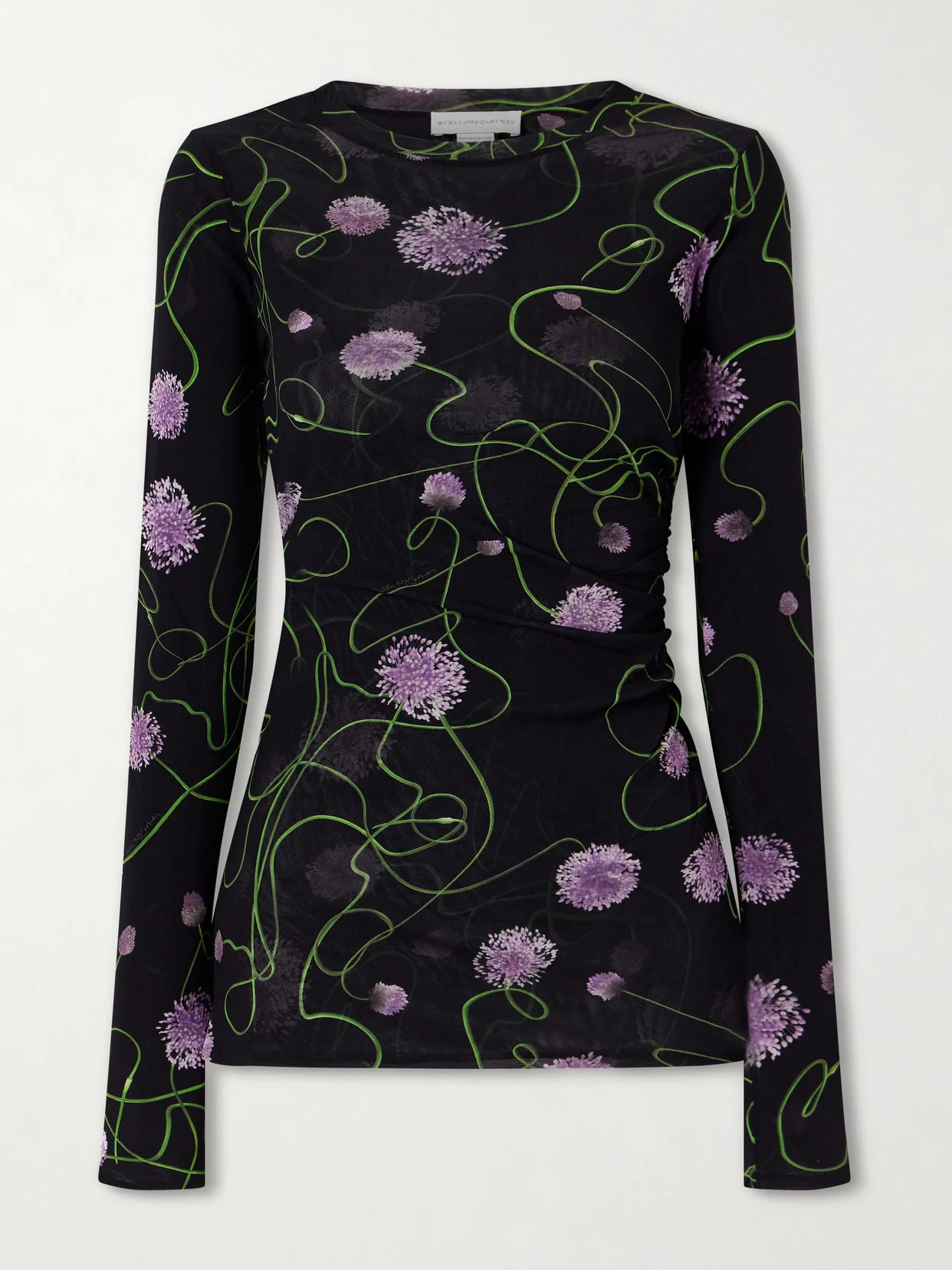 Stella McCartney often features wildflowers in her designs. This top has been made in Portugal from fine jersey printed with purple florals. Style yours with everything from pants to skirts and jeans.