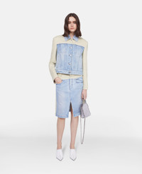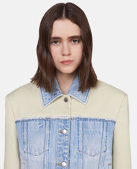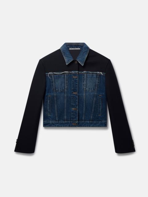 Item 6D02063SPH604221 - Colour: Blue/Ecru - Light wash medium blue - Organic cotton denim - Ecru recycled polyester twill panel waistband - Stella McCartney logo patch at back - Point collar - Long sleeves - Button-through fastening - Princess seams at front and back - Two chest welt pockets - Made in Italy Product Care & Fit Advice - Care: Dry clean only - Composition: Main fabric: 100% organic cotton, Secondary fabric: 100% recycled polyester - Fits true to size - Designed for a regular fit - Midweight, non-stretch fabric