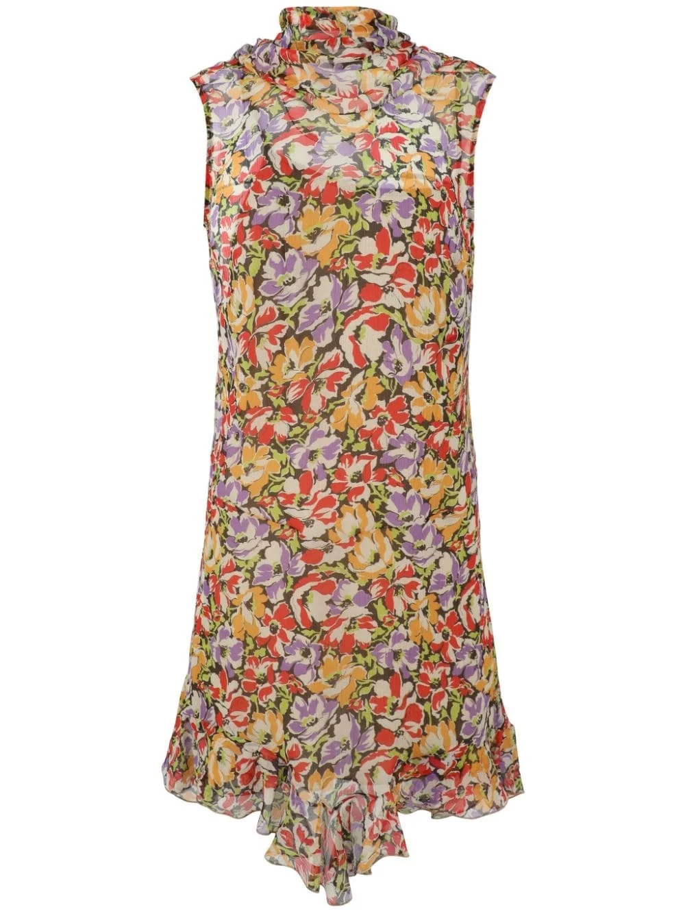 Ultra Floral-print ruffled minidress Highlights - Multicolour - Silk - All-over floral print - Sheer overlay - Mock neck - Open back - Rear tie fastening - Sleeveless - Asymmetric hem - Ruffled detailing - Internal slip dress - Thigh-length Made in Italy Composition Silk 100%