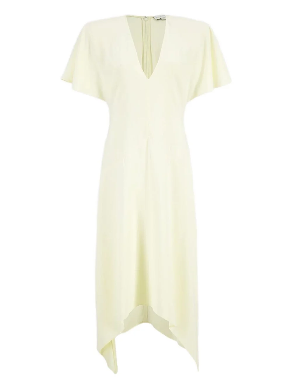 V-neck asymmetric dress Highlights - White - Short sleeves - V-neck - Asymmetric hem - Zip fastening Made in Italy Composition Bio Acetate 73%, Viscose 27% Washing instructions Dry Clean Only