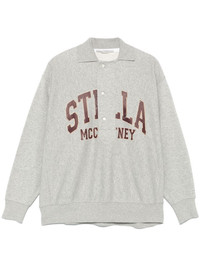 Varsity Logo polo top Highlights - Grey - Organic cotton - Jersey texture - Front button placket - Polo collar - Long sleeves - Ribbed cuffs and hem - Slogan print to the front Imported Composition Organic Cotton 100% SIZE & FIT Model measurements Height 5 ft 11 in(1.8 m) Bust/Chest 33.07 in(84 cm) Hips 37.4 in(95 cm) Waist 25.19 in(64 cm) FittingInformation Designed to be unstructured, offering a loose fit throughout Made from a midweight non-stretch fabric, this piece offers minimal elasticity when worn