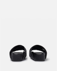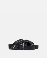 New for Summer 2022, our Vesta sandals feature exaggerated vegan Alter Mat crossover straps in seasonal tones – an effortless and timeless style made for the brighter days ahead. - Color: Black - Slides - Platform sole - Two crossover Stella McCartney logo straps - Round toe - Made in: Italy - Care: Spot clean only with soft damp cloth - Composition: Upper 5% polyester, 5% aliphatic solvent, 90% polyamide; Outsole: 100% microporous Product Care & Fit Advice - 40 mm/1.6 in. platform - Fits true to size - All of our shoes and accessories are made from non-leather materials as part of our cruelty-free ethos.