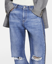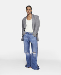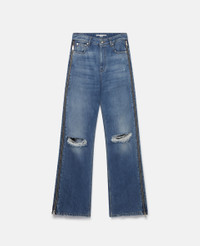 Build your Summer 2023 denim wardrobe with these straight leg jeans from Stella McCartney. The jeans are crafted from organic cotton with a vintage wash and hand-frayed and torn knees. - Colour: Mid Blue - Vintage wash medium blue - Organic cotton denim - Deconstructed ripped knees - S-Wave logo patch at back - Zip fly with button fastening - Five-pocket design - Straight leg; relaxed fit Product Care & Fit Advice - Care: Dry clean only - Composition: 100% organic cotton - Fits true to size - Designed for a loose fit - Low-rise waist - Model is 5ft 10.5in/1.79m, is a size UK 6 and wears a size IT 40 (US 4-6/UK 8/FR 36)