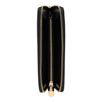 Introducing the Stella McCartney Womens Wallet, a stylish and functional accessory for the modern woman. This wallet features a zip closure for added security and a sleek plain pattern for a timeless look. With its logo detailing, card slots, internal compartments, and center currency pocket, this wallet offers ample space for all your essentials. Crafted from 100% polyester, it is both durable and easy to maintain. The wallet measures 10.0 cm in height, 19.5 cm in width, and 2.0 cm in depth. Upgrade your accessory collection with this must-have wallet from Stella McCartney. Designer color: Black Designer ID: 700251WP00571000 Material & Care 100% Polyester
