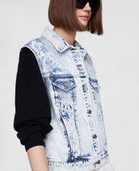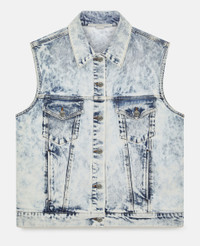 Spring 2022 is a time for renewal and a return to (night)life, made for Stella women who live in the moment and are conscious of tomorrow. The collection blends the nostalgic with the futuristic, connecting the experimental aesthetics of Y2K music subcultures and club kids to the digital youth of today. - Color: Multicolor - Denim gilet - Shirt collar, button closure at the front - Two button patch pockets - Handmade tie-dye bleaching - Made in: Italy Product Care & Fit Advice - Care: Machine washable 30°C - Composition: 98% Organic Cotton, 2% Elastan - Fits true to size - Designed for a regular fit - Mid-weight, slightly stretchy fabric - Model is 5ft 10in/ 1.78m, is a size US 4 and wears a size IT 40 (UK 8/FR 36)