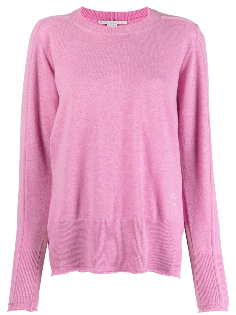 waterfall-hem fine-knit jumper Crafted from a soft blend of cashmere and wool, this Stella McCartney fine-knit jumper is elevated by a waterfall-style hem. A tonal embroidered logo at the front adds a subtle signature touch. Highlights - Pink cashmere-wool blend waterfall-hem fine-knit jumper from stella mccartney featuring crew neck, long sleeves, side slits and ribbed-knit edge. . Made in Italy Composition Cashmere 75%, Wool 25% SIZE & FIT Model measurements Height 5 ft 11 in(1.8 m) Bust/Chest 33.07 in(84 cm) Hips 37.4 in(95 cm) Waist 25.19 in(64 cm) FittingInformation This piece fits true to size. We recommend you get your regular size Cut for a loose fit Made with a mid-weight fabric Washing instructions Hand Wash