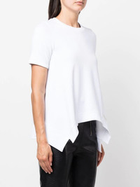 waterfall-hem T-shirt Crafted from a soft blend of lyocell and cotton, this Stella McCartney T-shirt is elevated by a waterfall-style hem, offering a contemporary silhouette. Highlights - White - Lyocell-cotton blend - Round neck - Short sleeves - High-low hem Imported Composition Cotton 70%, Lyocell 30% SIZE & FIT Model measurements Height 5 ft 11 in(1.8 m) Bust/Chest 33.07 in(84 cm) Hips 37.4 in(95 cm) Waist 25.19 in(64 cm) FittingInformation This piece fits true to size. We recommend you get your regular size Cut for a loose fit Made with a mid-weight fabric Washing instructions Machine Wash