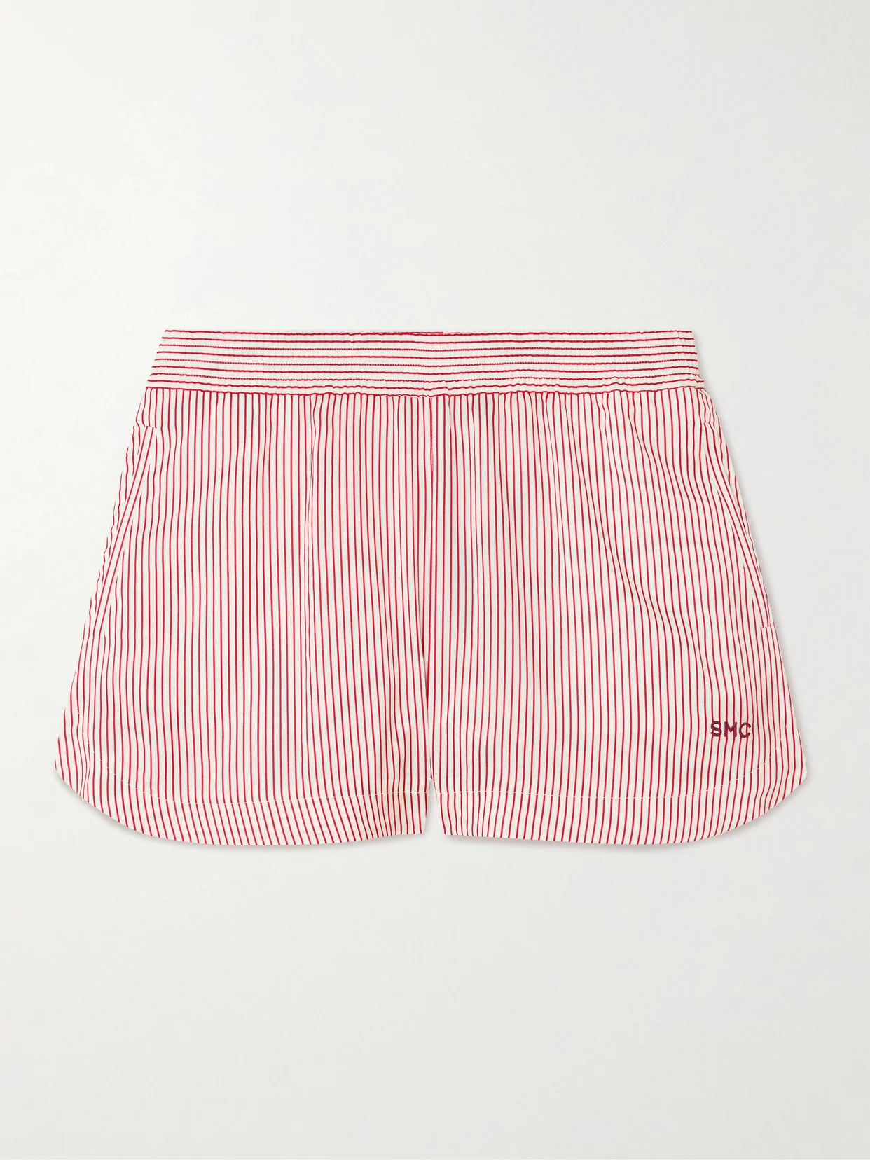 Stella McCartney's shorts are made from organic silk that's exceptionally lightweight and airy. They're patterned with stripes and detailed with an elasticated waistband, logo embroidery and curved overlapping hems. Lower-Impact Materials. This product is made using at least 50% lower-impact materials or ingredients. Find out more about our NET SUSTAIN criteria here.