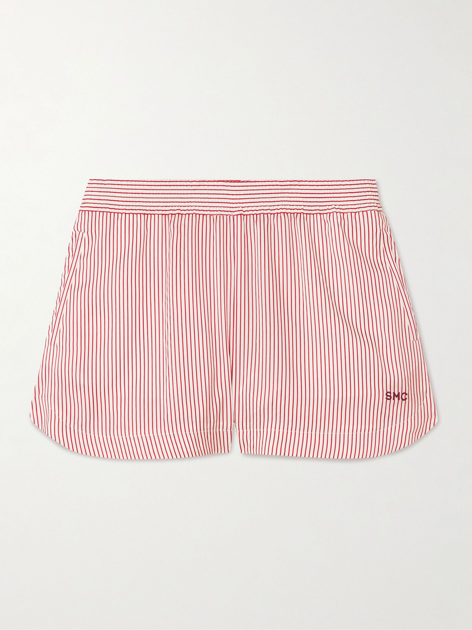Stella McCartney's shorts are made from organic silk that's exceptionally lightweight and airy. They're patterned with stripes and detailed with an elasticated waistband, logo embroidery and curved overlapping hems. Lower-Impact Materials. This product is made using at least 50% lower-impact materials or ingredients. Find out more about our NET SUSTAIN criteria here. Size & Fit - Fits true to size, take your normal size - Mid-rise, designed for a loose fit - Elasticated at the waist for a flexible fit - Lightweight, non-stretchy fabric - Model is 180cm/ 5'11" and is wearing an IT 40 Model measurements: - Bust: 76cm/ 30" - Waist: 64cm/ 25" - Hip: 86cm/ 34" Details & Care - White and red organic silk - Pull on - 100% organic silk - Dry clean