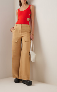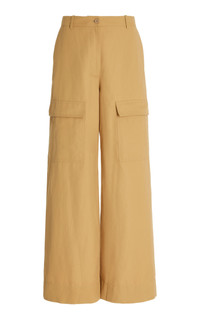 Fall '22 is made for the ambitious Stella woman — desiring to be her best self in all aspects of her life, reflecting her dynamic moods and ageless attitudes. The label revisits classic statement pieces that every wardrobe needs, bringing them into the now and elevating them with a signature Stella twist. These utilitarian-style pants have a voluminous wide-leg cut made from compact-twill with cargo pockets at the front. Try pairing them with a billowing blouse to mirror the brand styling. PRODUCT DETAILS - Button and concealed zip fastening along front - Composition: 40% polyamide, 36% cotton, 24% flax - Designer color: Camel - Dry clean - Made in Italy SIZE & FIT - Our model is 180cm/ 5'11" and wearing a IT 38 - Fits true to size, our fit specialist recommends taking your normal size
