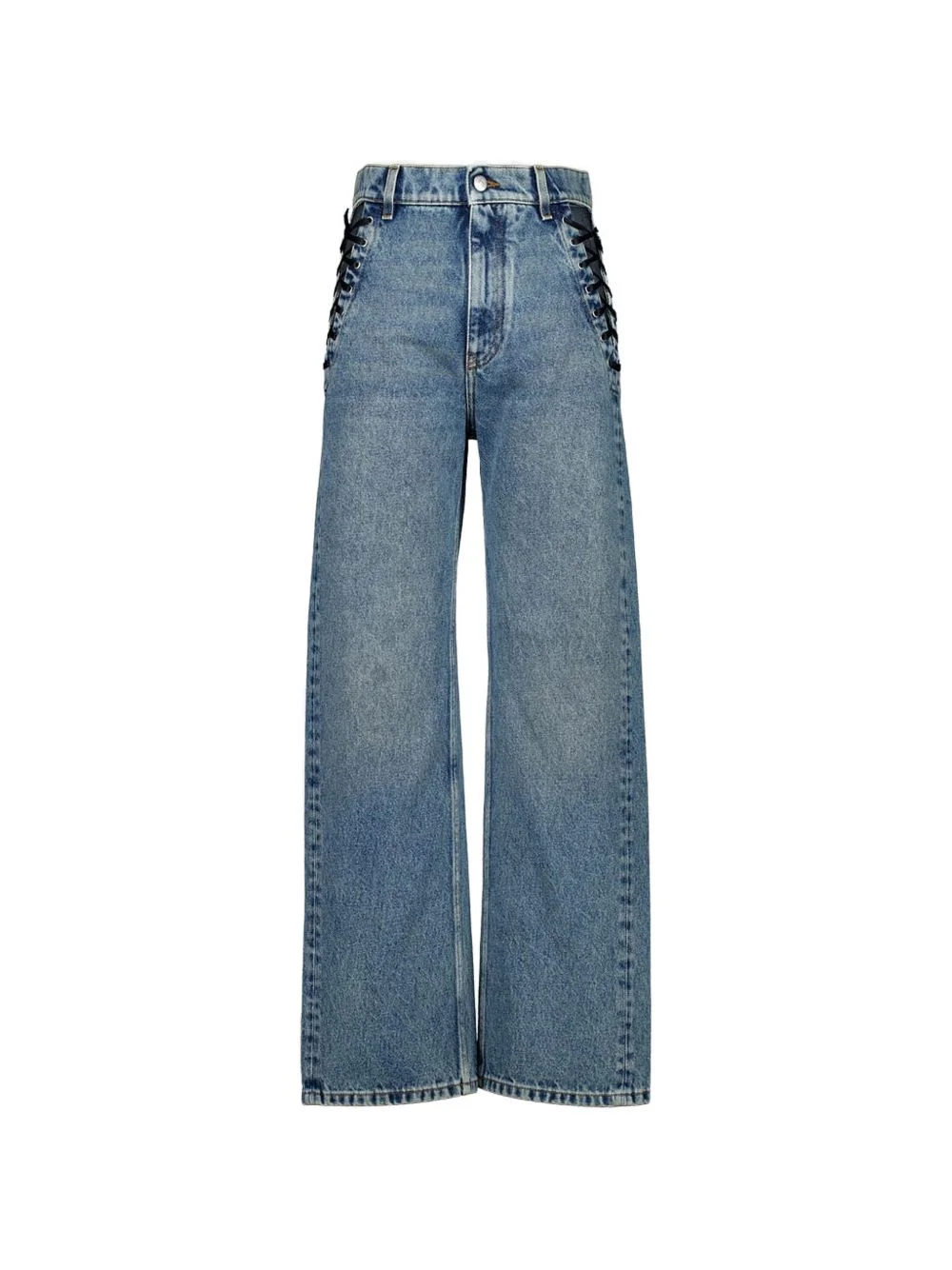 wide-leg lace-up jeans Highlights - Blue - Denim - Lace-up detail - Cotton Made in Italy Composition Cotton 73%, Polyester 27% Washing instructions Read Manufacturer Guidelines