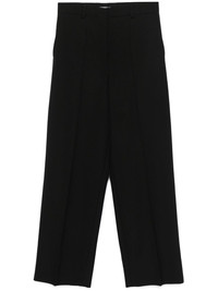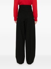 wide-leg trousers Highlights - Black - Wool - Concealed front button, hook and zip fastening - Belt loops - Pressed crease - Two diagonal pockets to the sides - Rear welt pocket - Wide leg Imported Composition RWS Wool 100% SIZE & FIT Model measurements Height 5 ft 10 in(1.78 m) Bust/Chest 33.46 in(85 cm) Hips 36.22 in(92 cm) Waist 23.22 in(59 cm) FittingInformation Designed with a wide-leg cut, these trousers allow for a close fit at the waist and offer a loose and roomy fit over the leg Made from a midweight non-stretch fabric