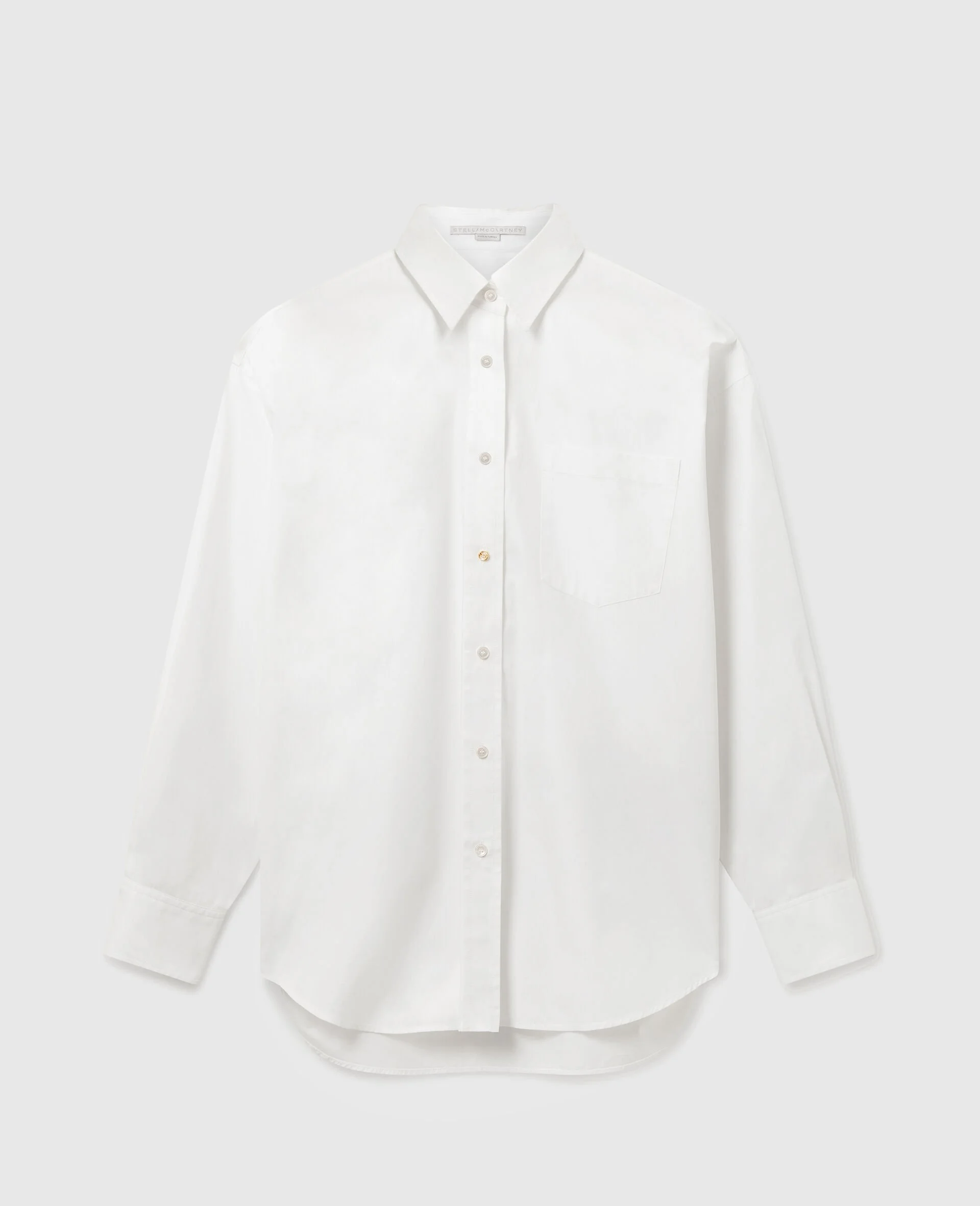 Item 6200443CU1009000 Bringing archival pieces into the now, this Oxford shirt from Stella McCartney is manoevered into a boyfriend fit with S-Wave details and neat buttoned cuff sleeves. The white shirt is crafted from 100% SOKTAS regenerative cotton, grown and harvested using nature-positive sourcing methods, that actively restore soil nutrients, enhance biodiversity, increase ecosystem resilience and improve welfare of farmers. - Colour: Pure White - Pure bright white - SOKTAS regenerative cotton poplin - Point collar - Long sleeves with button cuffs - Button-through fastening - Left chest patch pocket Product Care & Fit Advice - Care: Dry clean only - Composition: 100% SOKTAS regenerative cotton - Fits true to size - Designed for a regular fit - Lightweight, semi-stretch fabric - Model is 5ft 10.5in./1.79m, is a size UK 6 and wears a size IT 40 (US 4-6/UK 8/FR 36)