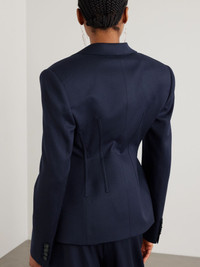 Stella McCartney’s blazer is designed with corset-inspired boning along the nipped-in waist, adding structure to the smart shape. It's made from wool and has a single-breasted front and padded shoulders. Lower-Impact Materials. This product is made using at least 50% lower-impact materials or ingredients. Find out more about our NET SUSTAIN criteria here. Size & Fit - Fits true to size, however those who are between sizes should take the smaller size - Designed for a slim fit - Mid-weight, non-stretchy fabric - Model is 180cm/ 5'11" and is wearing an IT 40 Model measurements: - Bust: 76cm/ 30" - Waist: 64cm/ 25" - Hip: 86cm/ 34" Details & Care - Navy wool - Button fastening at front - 100% wool; lining: 52% viscose, 48% cotton - Dry clean - This product has been made with responsibly sourced wool, originating from farms protecting animal welfare and implementing progressive land management practices