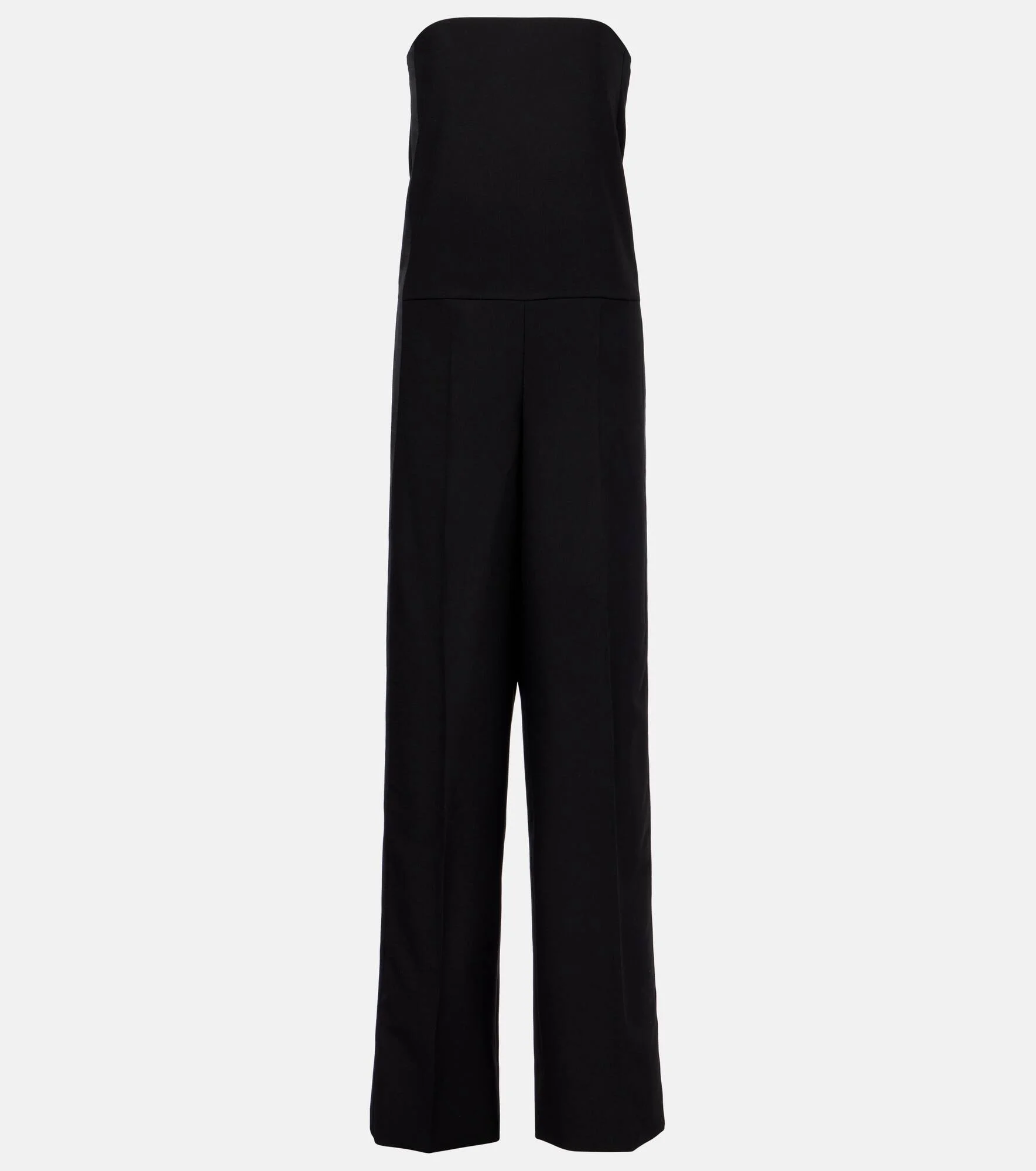 This sophisticated jumpsuit by Stella McCartney is crafted from soft wool with silk trim. The sleeveless, off-shoulder design features side and back pockets, a zip-back closure, and single-pleated trousers for tailored elegance. Product Details - Material: 100% wool - Care instructions: dry clean - Made in Hungary - Designer color name: Black - Item color: black - Lining: 52% viscose, 48% cotton - Details: 100% silk - Closure: zipped back - Built-in bustier - Pockets: side slit pockets, back pocket - Single pleat - Item number: P01052073 Size & Fit - Fits large to size - we recommend trying one size smaller - Sizing adapted to taller women - Strapless - Internal boned corset for support - Straight fit - Non-stretchy fabric - Wide-leg - Low inseam - The model seen in the picture is 178cm-5'10" and wearing a size IT 38