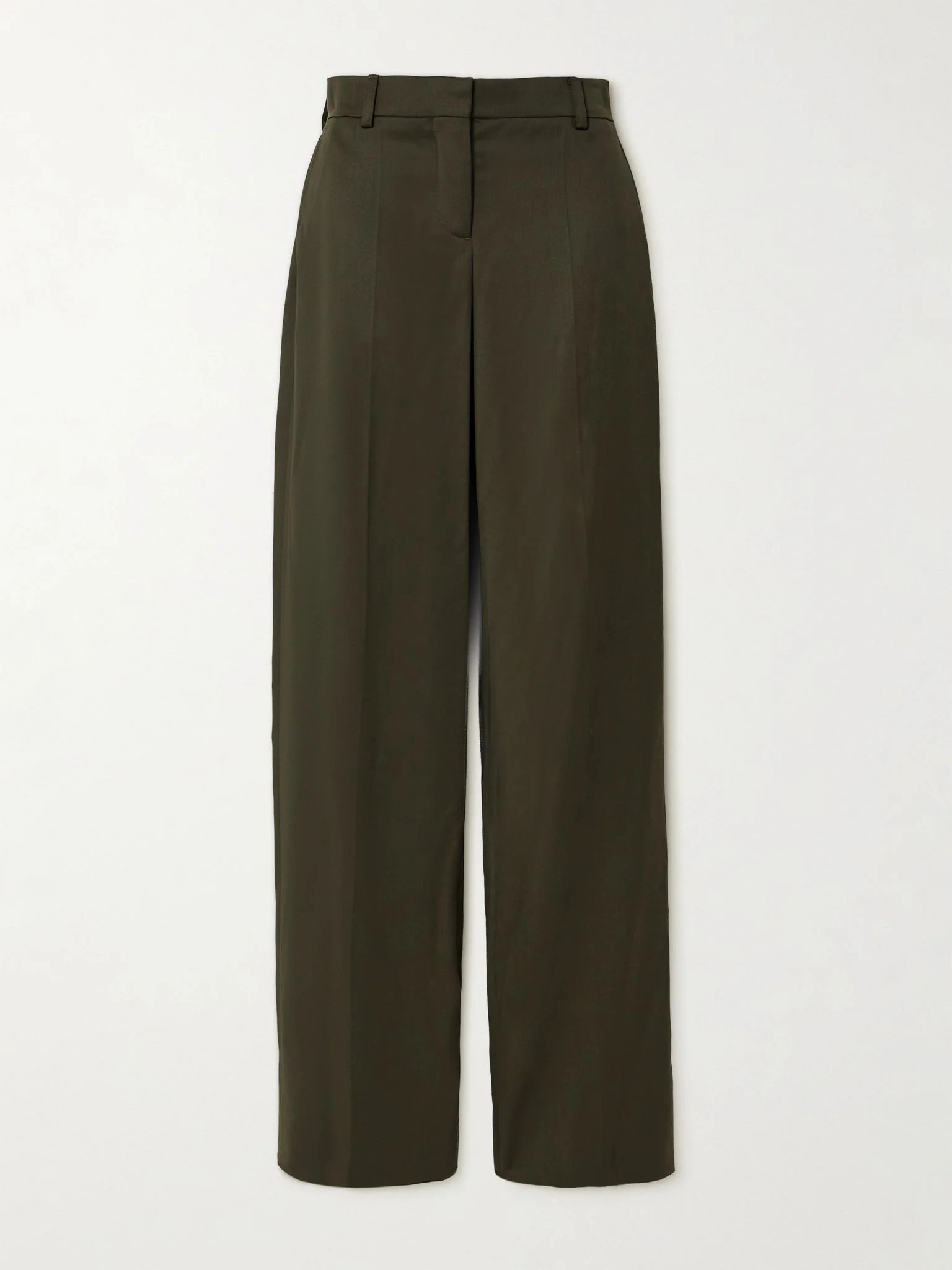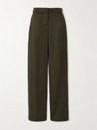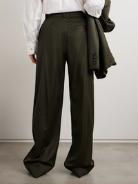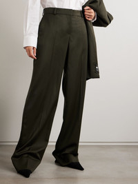 Stella McCartney's pants belong to the Winter '25 collection, which focuses on a day-to-night wardrobe of "masculine and feminine archetypes." They've been tailored in Italy from certified wool and have wide legs pressed with elongating creases. Wear yours with the matching jacket and an oversized shirt. Lower-Impact Materials. This product is made using at least 50% lower-impact materials or ingredients. Find out more about our NET SUSTAIN criteria here. Size & Fit - Fits true to size, take your normal size - Mid-rise, cut for a wide-leg fit - Mid-weight, non-stretchy fabric - Model is 177cm/ 5'10" and is wearing an IT 40 Model measurements: - Bust: 85cm/ 33” - Waist: 66cm/ 26” - Hip: 92cm/ 36” Details & Care - Army-green wool - Concealed zip fastening along front - 100% wool - Dry clean - This product has been made with responsibly sourced wool, originating from farms protecting animal welfare and implementing progressive land management practices