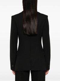 wool single-breasted blazer Highlights - Black - Wool - Twill weave - Peak lapels - Shoulder pads - Buttoned cuffs - Chest welt pocket - Two side flap pockets - Central rear vent - Full lining - Curved hem - Front button fastening Imported Composition Outer: Wool 100%, Polyester 56%, Viscose 44% Lining: Viscose 52%, Cotton 48% SIZE & FIT Model measurements Height 5 ft 10 in(1.77 m) Bust/Chest 31.49 in(80 cm) Hips 35.82 in(91 cm) Waist 25.98 in(66 cm) FittingInformation Designed for a slim fit that sits just away from the body offering a close yet comfortable fit The internal shoulder pads offer a structured shape Made from a midweight non-stretch fabric This piece fits true to size – take your usual size