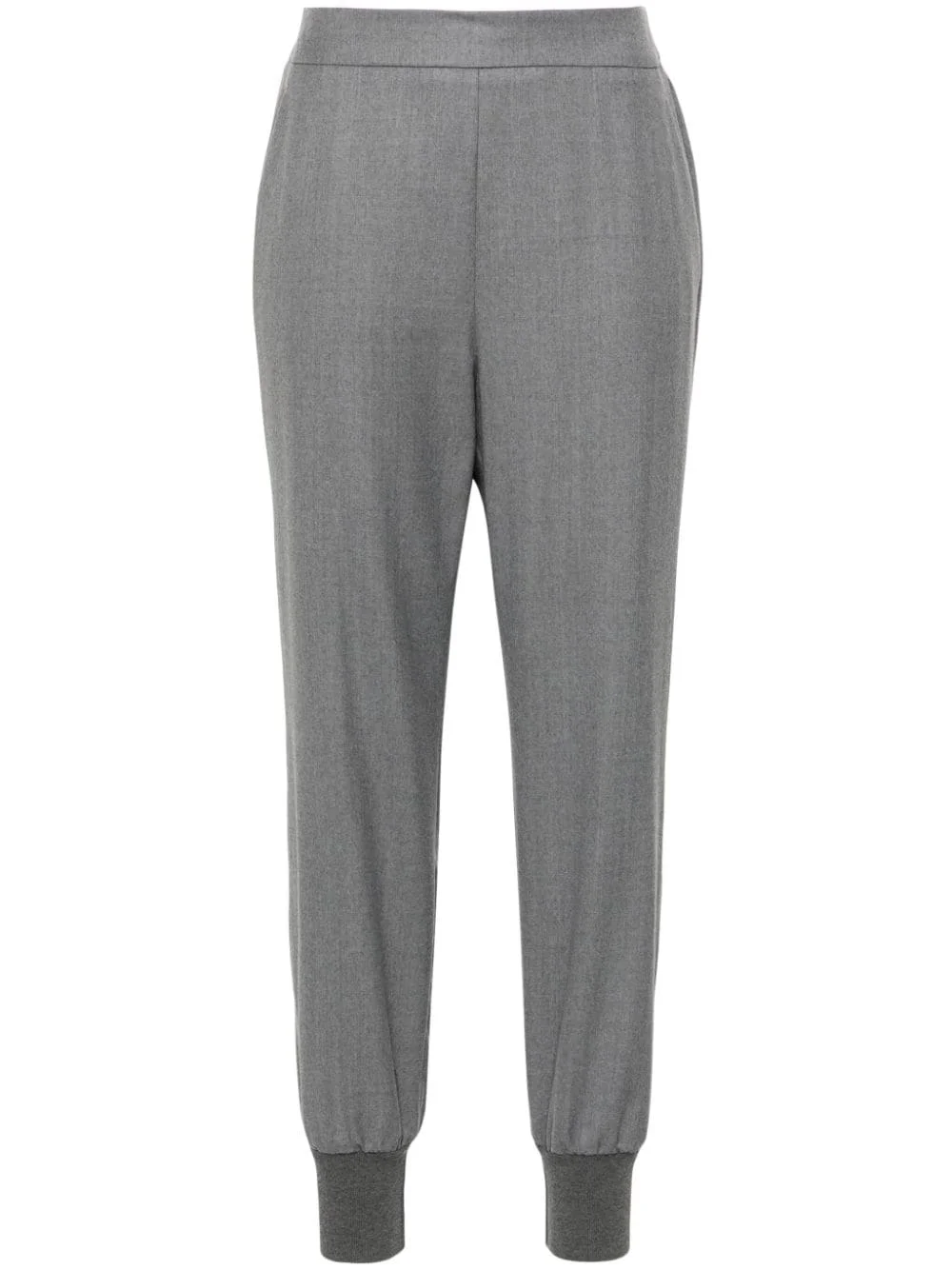 wool tapered trousers Highlights - Light grey - Wool - Melange effect - Pressed crease - Rear elasticated waistband - Tapered leg - Two side slit pockets - Ribbed ankles Imported Composition RWS Wool 100%, Cotton 98%, Spandex/Elastane 1%, Polyamide 1% SIZE & FIT Model measurements Height 5 ft 9 in(1.75 m) Bust/Chest 31.88 in(81 cm) Hips 34.64 in(88 cm) Waist 24.01 in(61 cm) FittingInformation Designed for a relaxed tapered cut, these trousers allow for a close fit at the waist and offer a loose fit at the thighs, with a closer fit toward the ankles The zipped hems allow you to adjust the fit throughout the calves and ankles Made from a midweight fabric This piece fits true to size – take your usual size